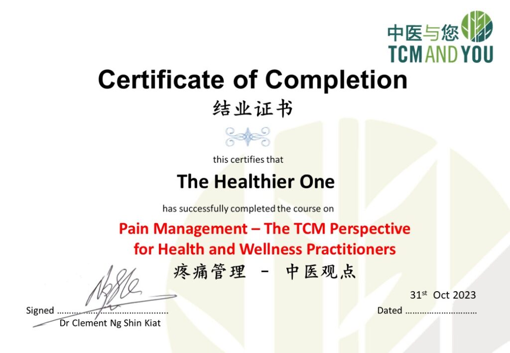 疼痛管理– 中医保健与养生方法 – TGS-2023022238 (讲师:黄欣杰 博士)