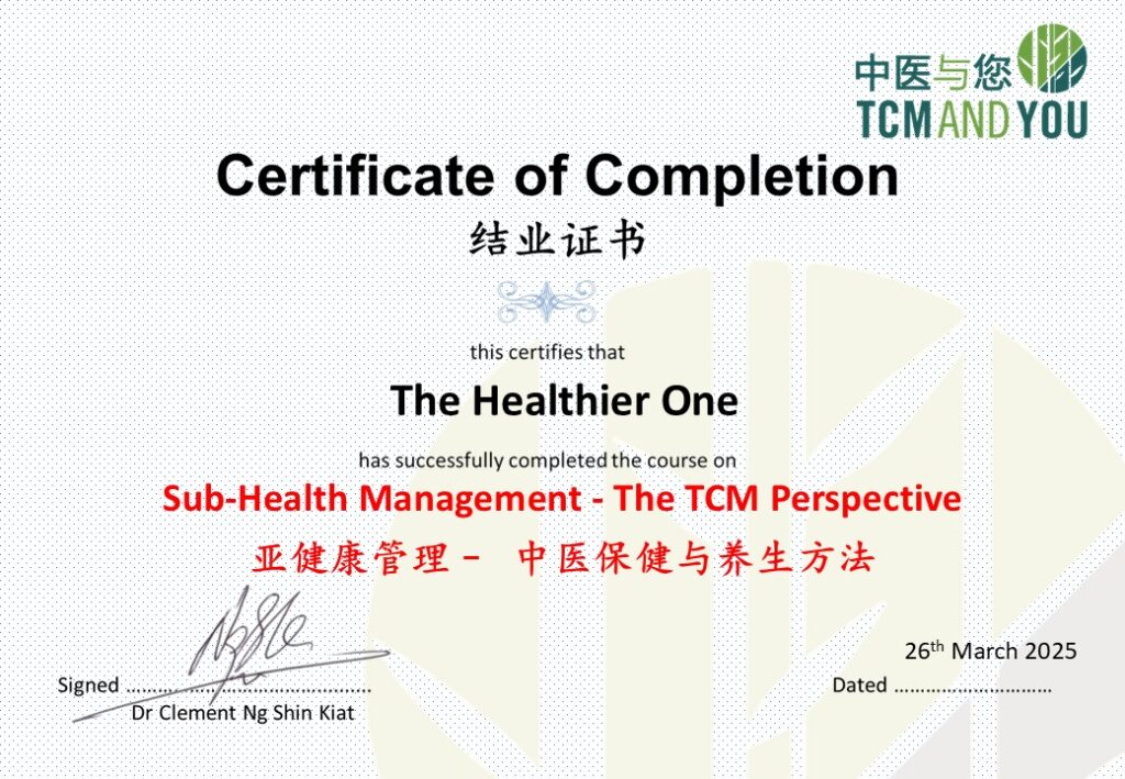 亚健康管理– 中医保健与养生方法 – TGS-2023022240 – (讲师:叶艾美 医师)